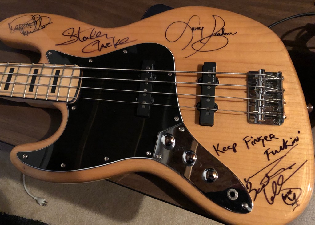 Signed by Bootsy Collins, Larry Graham, Stanley Clarke and Marcus Miller. I had a space saved for Louis Johnson but couldn’t get there in time…
