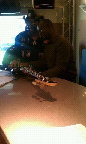 At WHUR-FM with the legendary Bootsy Collins. He was performing a Funk Blessing on my MusicMan Bass. Really cool Brother…